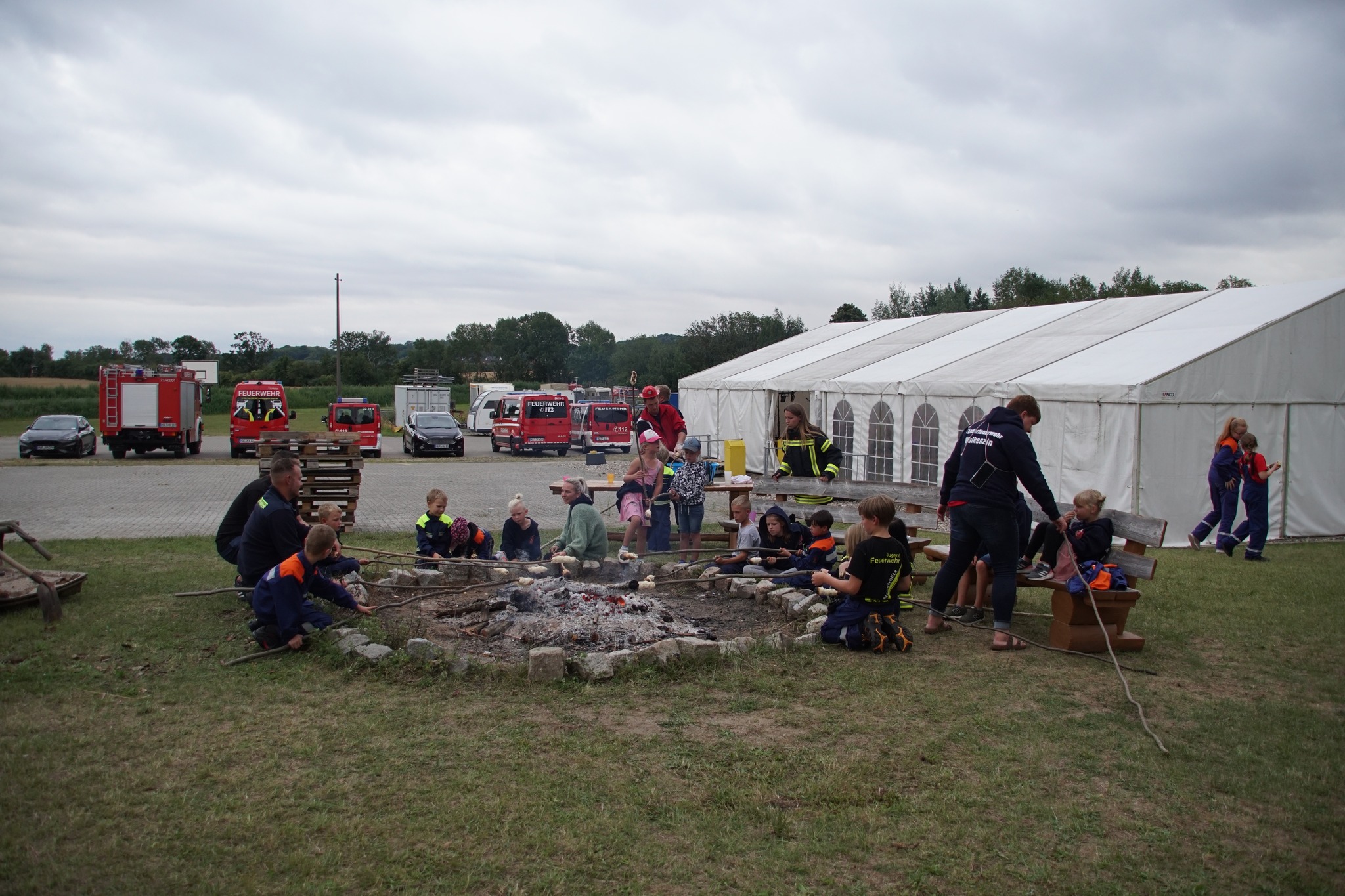 Am Abend versammelten sich dann die Bewohner der Zeltstadt zu einem gemeinsamen Grillabend mit Lagerfeuer und Knüppelkuchen, der von der Feuerwehr Kucksee gesponsert wurde. Hierzu waren auch Vertreter aus den Feuerwehren recht herzlich eingeladen. Der Einladung folgten auch die beiden stellvertretenden Kreiswehrführer Wilfried Affeldt und Thomas Kahle.