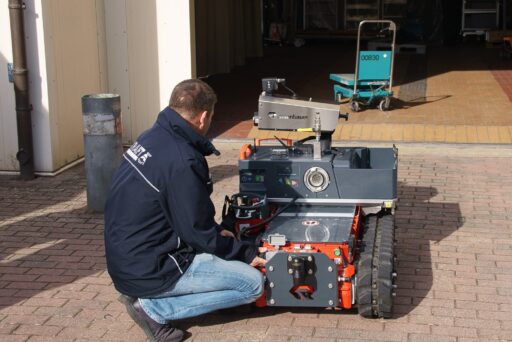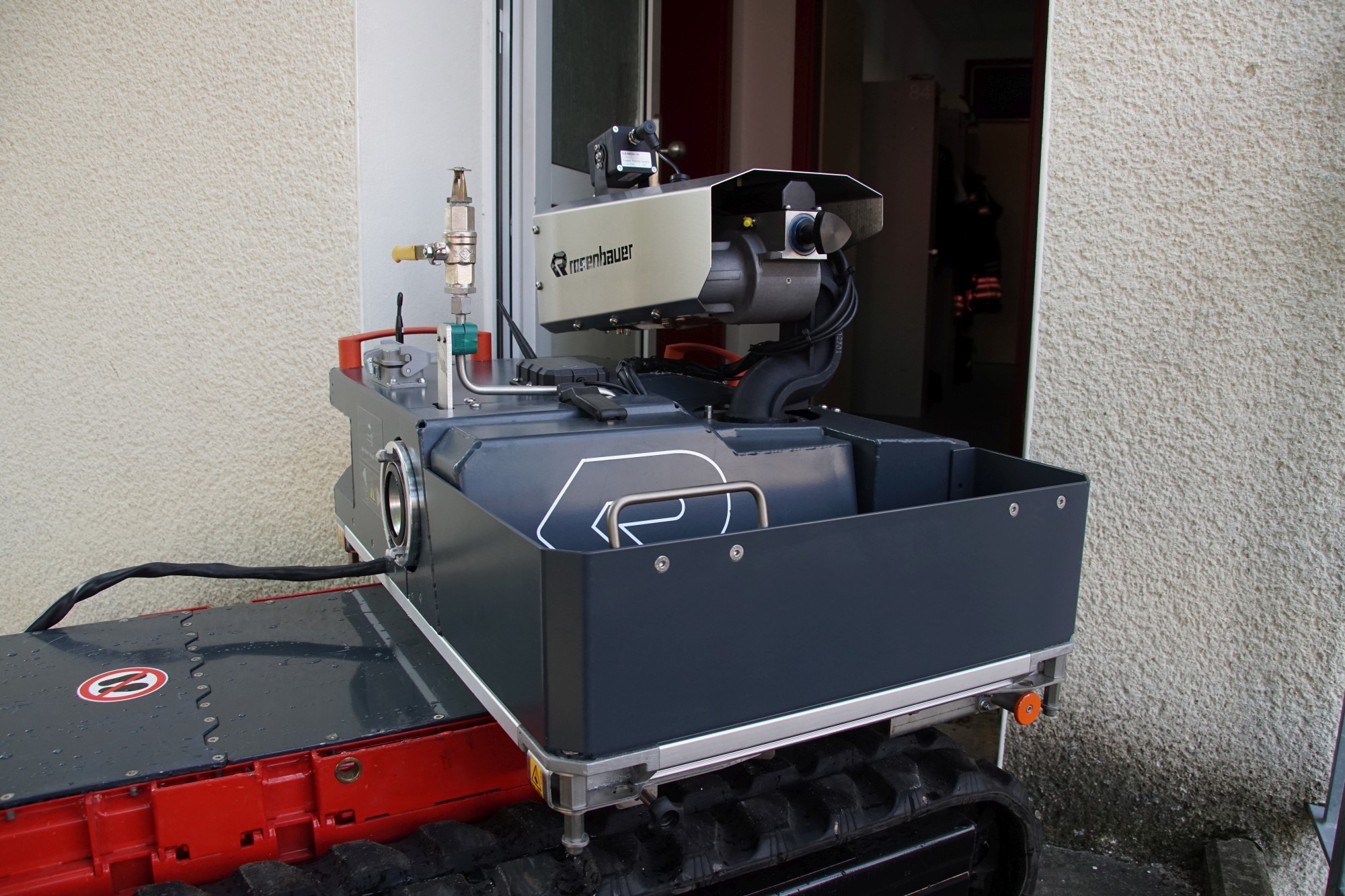 Gesteuert wird der kleine „Wall-E“ mit einem Bedienteil. In den nächsten Wochen werden die Einsatzkräfte noch ausgiebig in deren Handhabung geschult.
