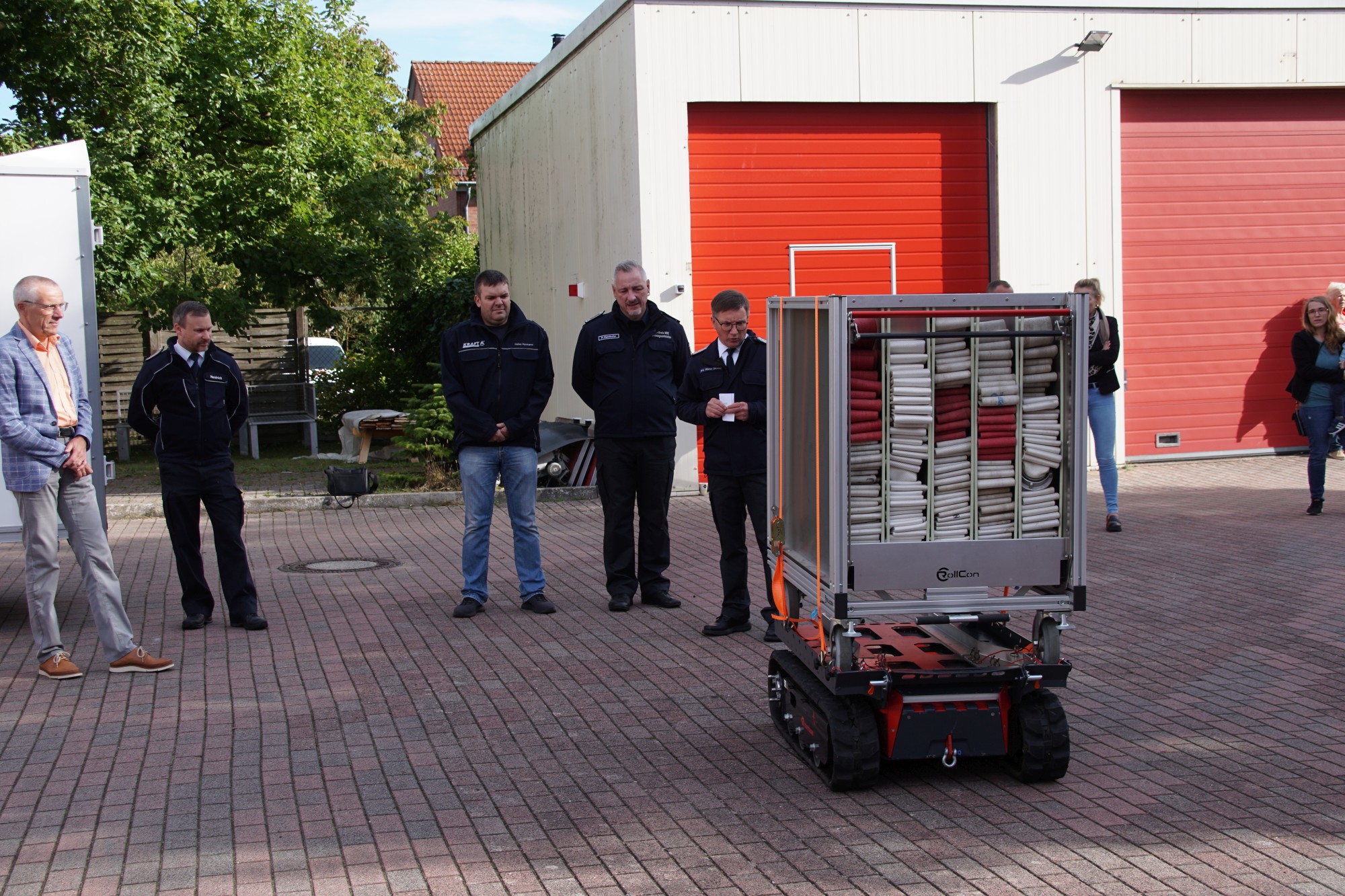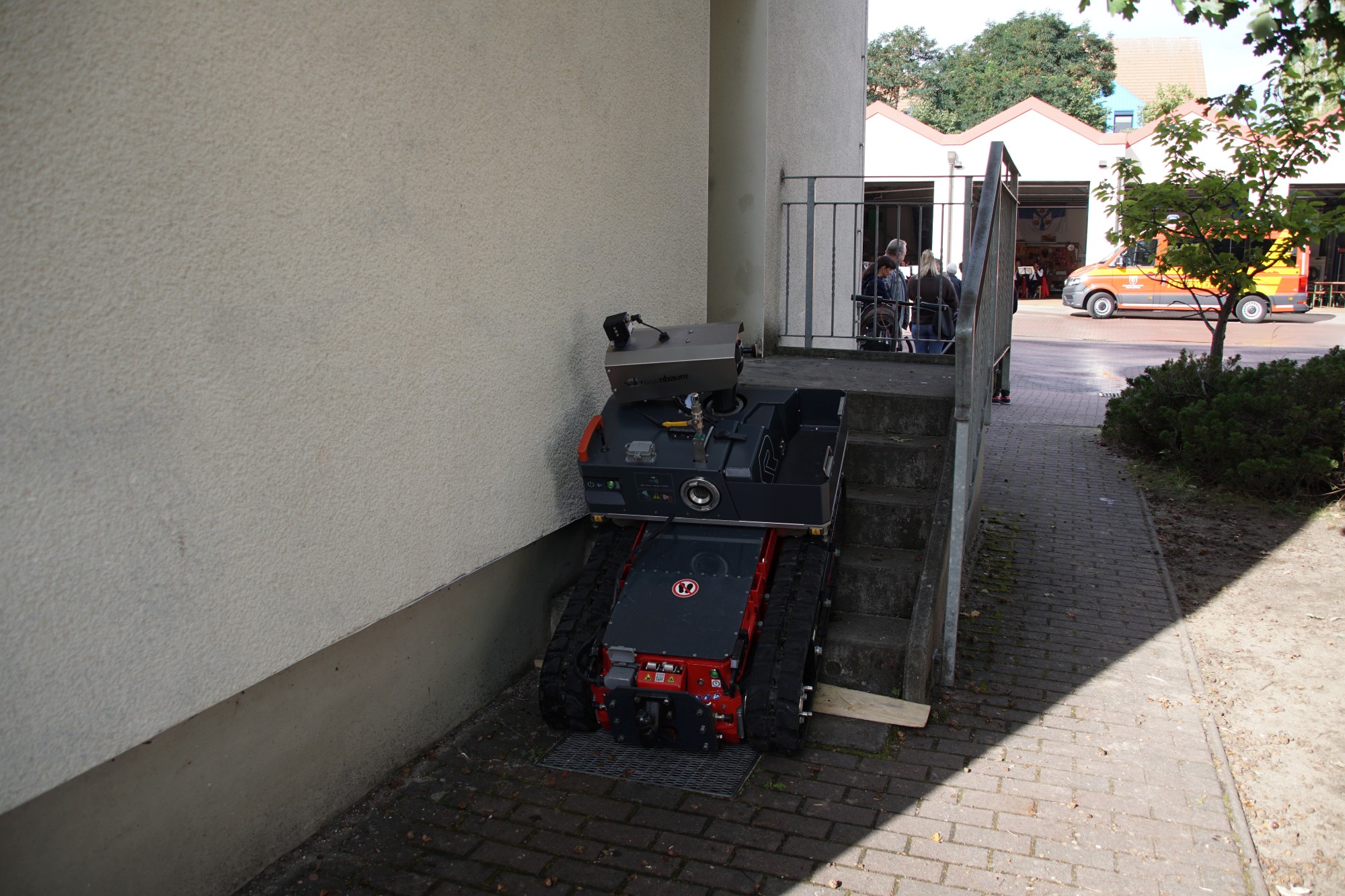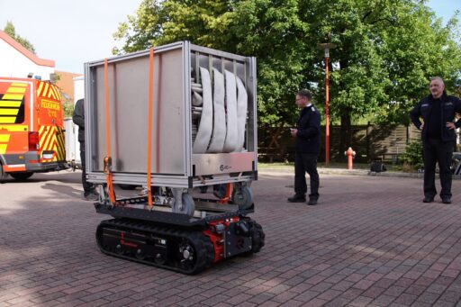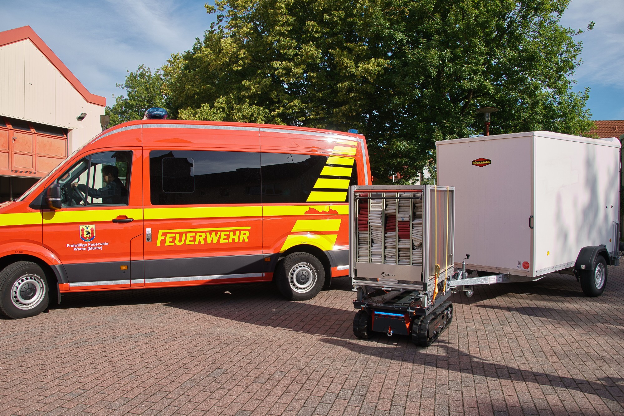 Dieser ist der erste Roboter, den eine Freiwillige Feuerwehr in der Seenplatte angeschafft hat und zur Beladung des im nächsten Jahr kommenden neuen Gerätewagen-Logistik gehört, ein weiteres Modell befindet sich in der Katastrophenschutztechnik des Landkreises.