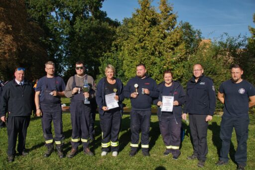 Mit 543 Punkten Sieger beim diesjährigen Kreisfeuerwehrmarsch des Kreisfeuerwehrverbandes Mecklenburgische Seenplatte und somit auch Ausrichter dieses im nächsten Jahr 2026, ist die Freiwillige Feuerwehr Watzkendorf. Sie erhalten neben den Sieger- auch den Wanderpokal.