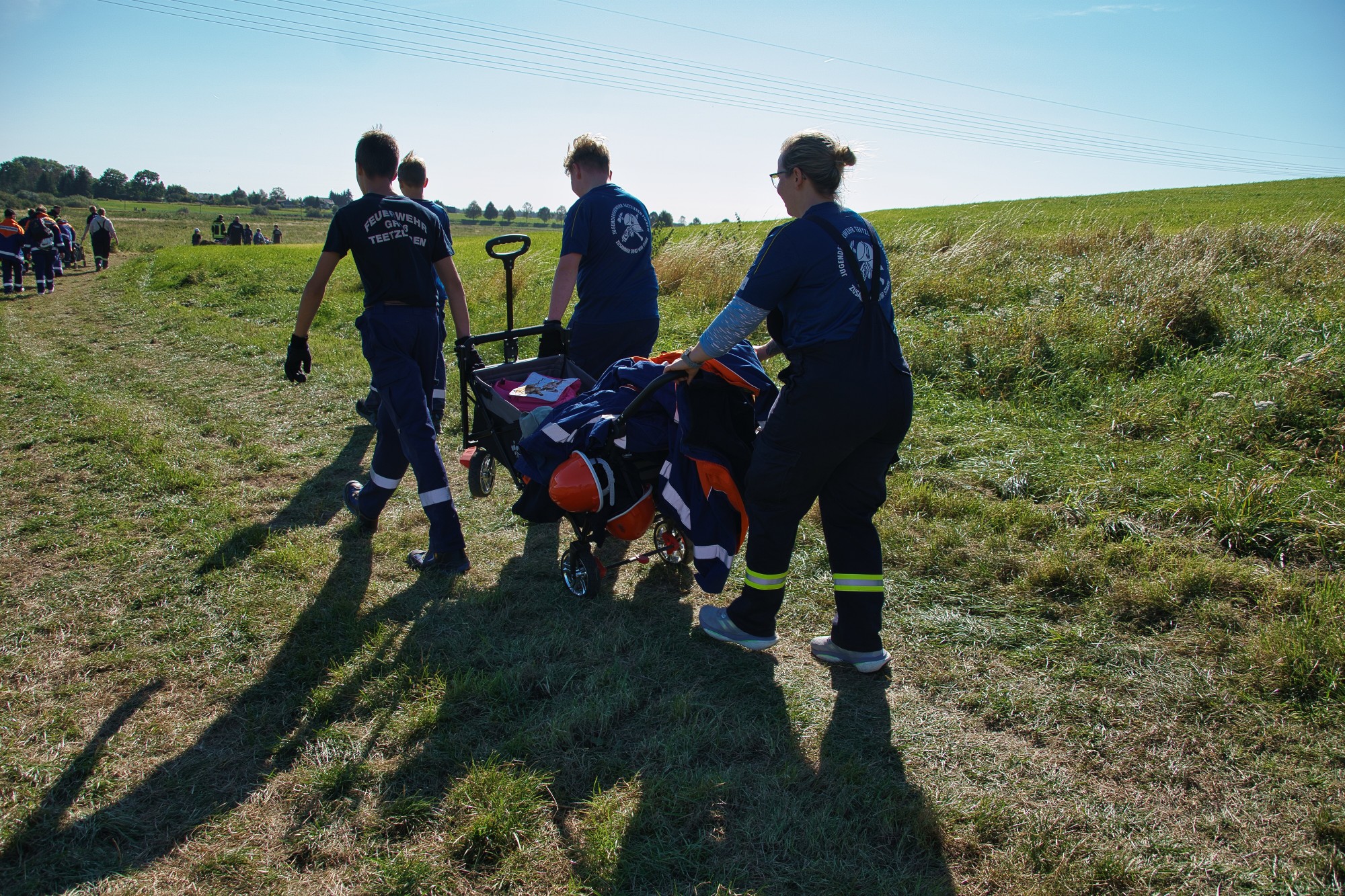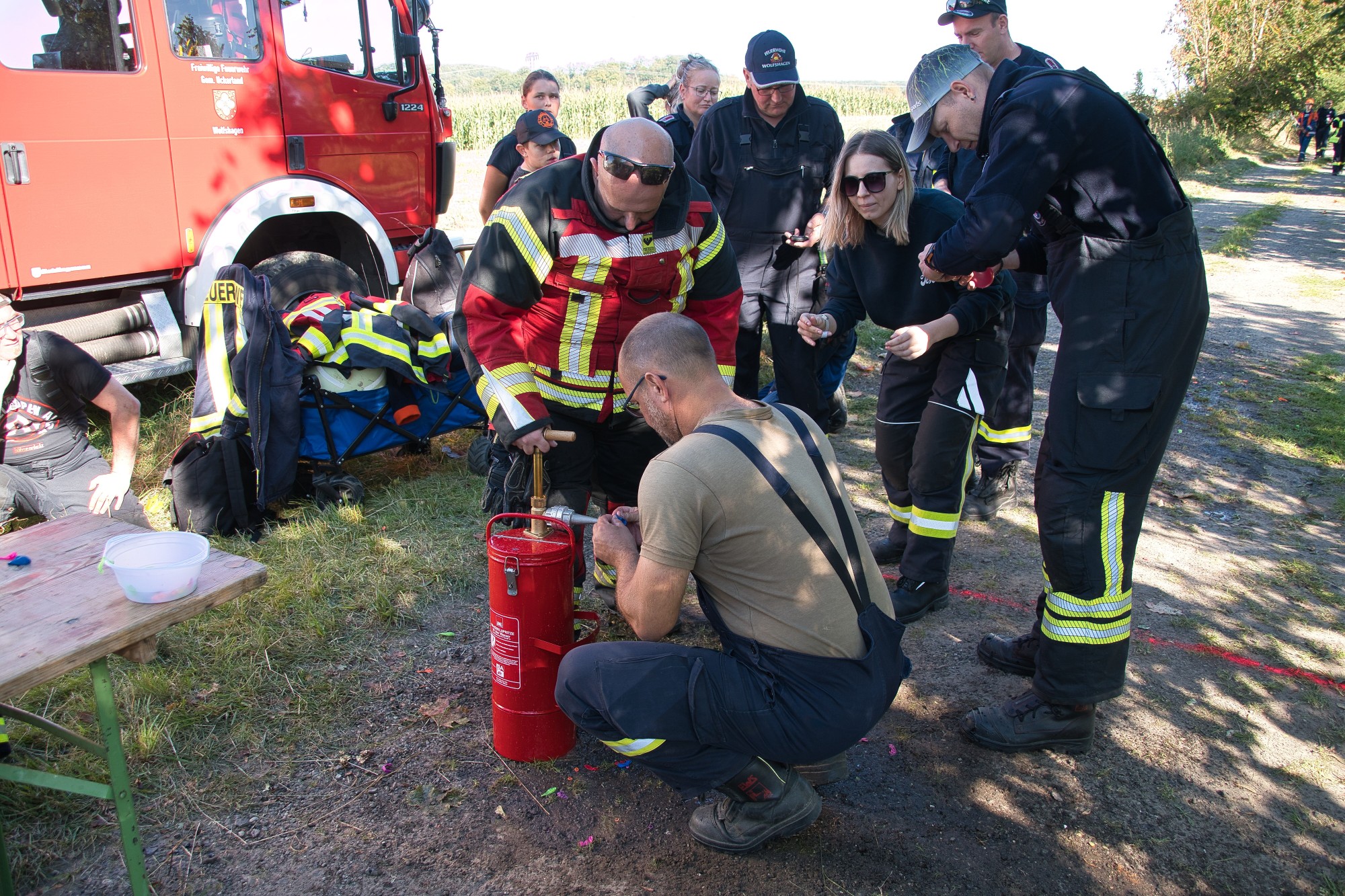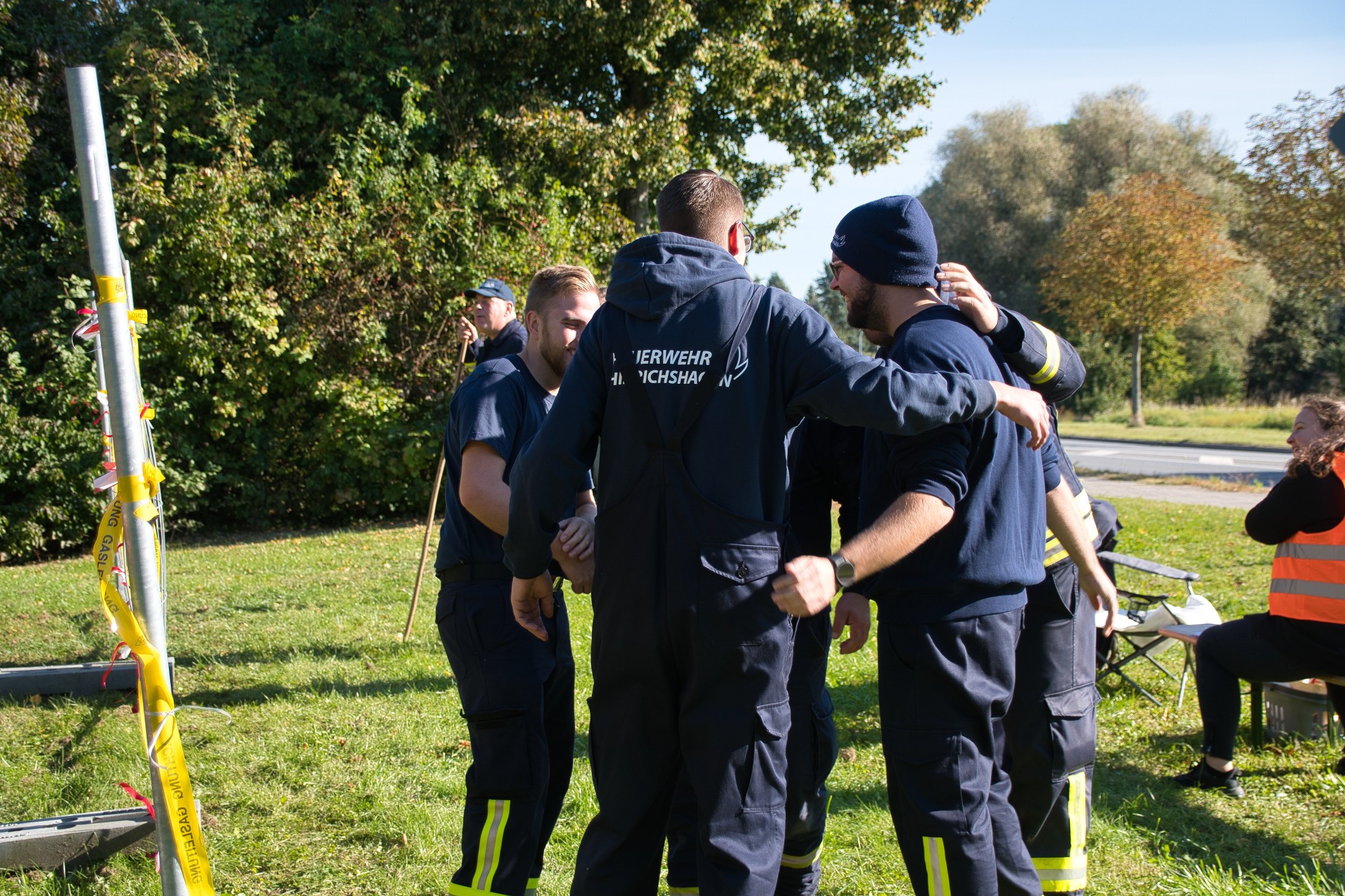 Unweit vom höchsten Punkt des Helpter Berges befand sich die Aufgabe „Schläuche flechten“! Aus drei Feuerwehrschläuchen sollte ein Zopf geflochten werden, wo natürlich ebenfalls die Zeit eine Rolle spielte und es zählten am Ende die kompletten Knoten.