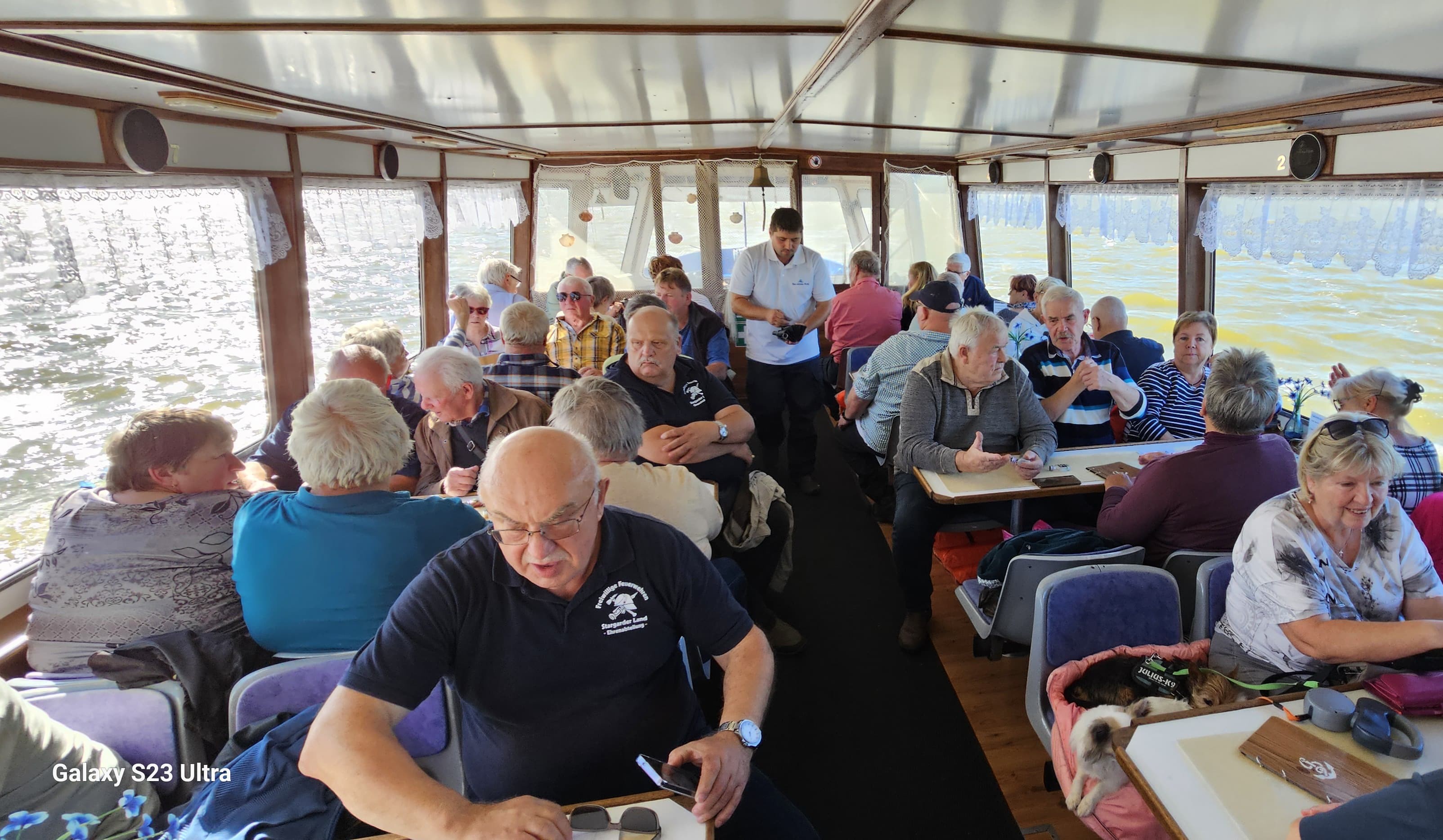 Auch in diesem Jahr unternahmen die Mitgliederinnen und Mitglieder der Ehrenabteilungen unserer Feuerwehren aus dem Stargarder Land wieder eine Reise. Dieses Mal nicht in die Ferne, sondern auf dem Zierker See mit Kammerkanal und Woblitz in Neustrelitz. Mit einem Fahrgastschiff der „Blau weißen Flotte“ Mirow schipperten wir schönstem Sommerwetter über die 2 Seen. Bei Kaffee und Kuchen oder einer deftigen Bockwurst konnten wir die teilweise unberührte Natur entlang der Fahrtroute bewundern. Nach der Rückkehr am Hafen in Neustrelitz verweilten wir noch einige Zeit an der Hafenpromenade bei einem leckeren Eis oder Kaffee oder etwas anderem bis wir dann die Heimreise antraten. Die Kosten für eventuelle Busreisen in die Ferne werden immer teurer für unsere Senioren, deshalb werden wir zukünftig unsere nähre Umgebung erkunden.